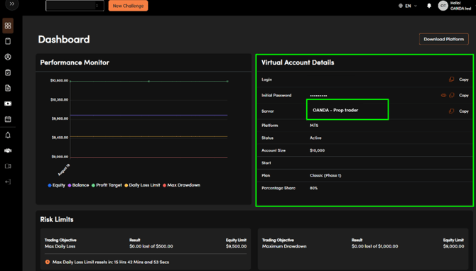 - 在「虛擬帳戶詳細資訊」下方,您將能找到您的 Meta Trade 帳戶詳細資訊。