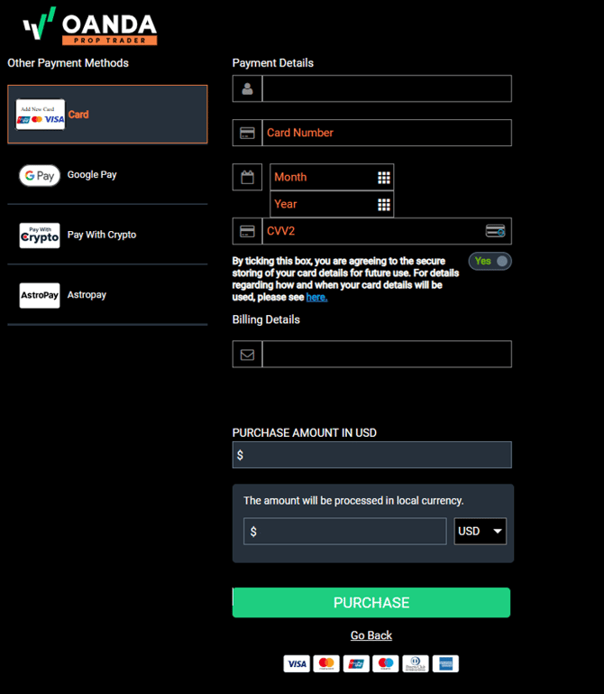1. 選擇帳戶類型和虛擬帳戶餘額。您可以點擊右上角的「比較挑戰」來比較這些挑戰
