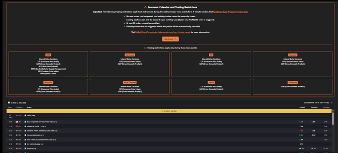 本節闡明了在高影響力經濟新聞事件期間交易的規則和限制。